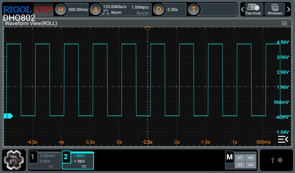 In hardware, I used a 0 to 5 V square wave to drive the gate. On the oscilloscope, I measured a gate signal of approximately 0–4.96 V and a complementary drain signal of approximately 12.20–0.10 V, which confirmed that the MOSFET was switching correctly and that the solenoid was indeed being energized. The small overshoot observed at the drain was consistent with the normal behavior of an inductive load with current recirculation. Even so, this test also showed that the final MOSFET selection must be verified using its specified RDS(on) at the actual gate-drive voltage, and not only VGS(th).