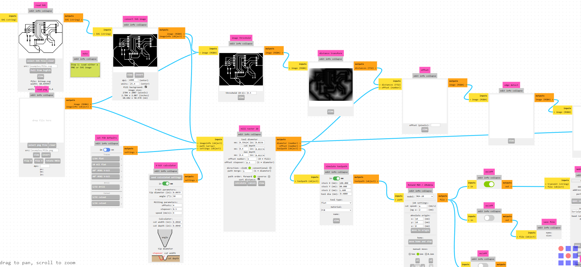 The Roland MDX-20 is a desktop milling machine widely used in PCB production processes. In this case, it was integrated with Mods to generate cutting toolpaths from designs created in KiCad.