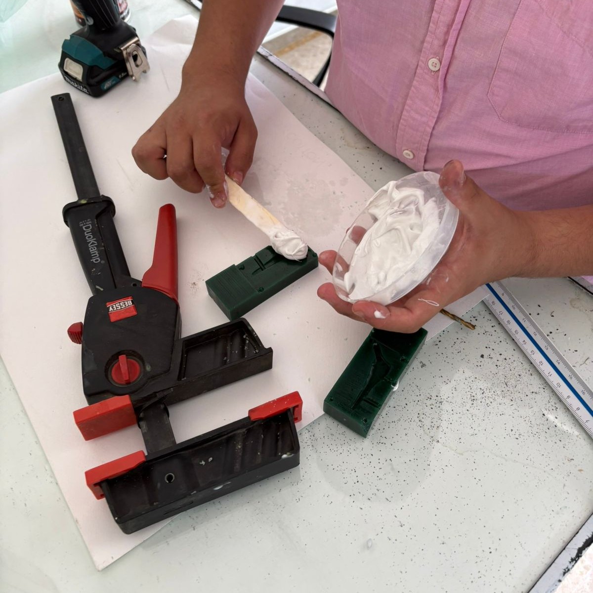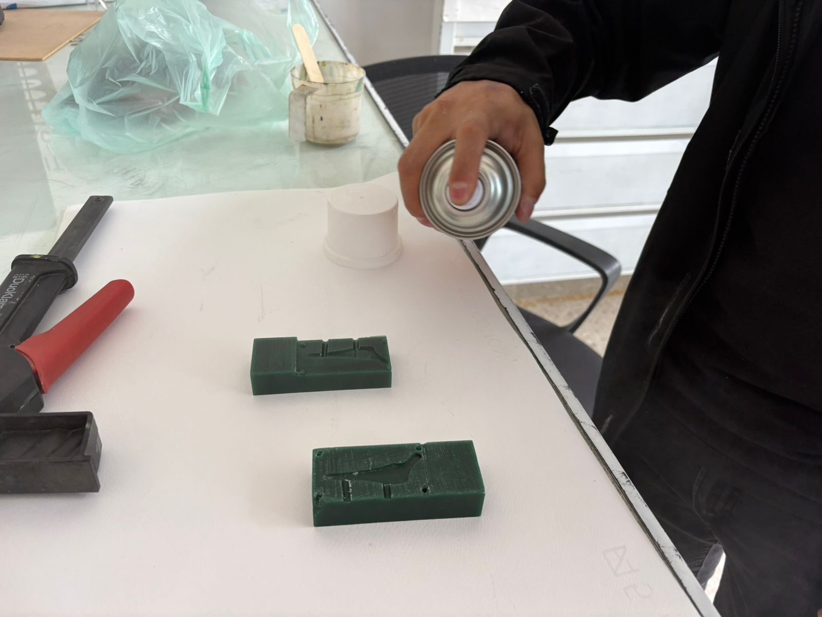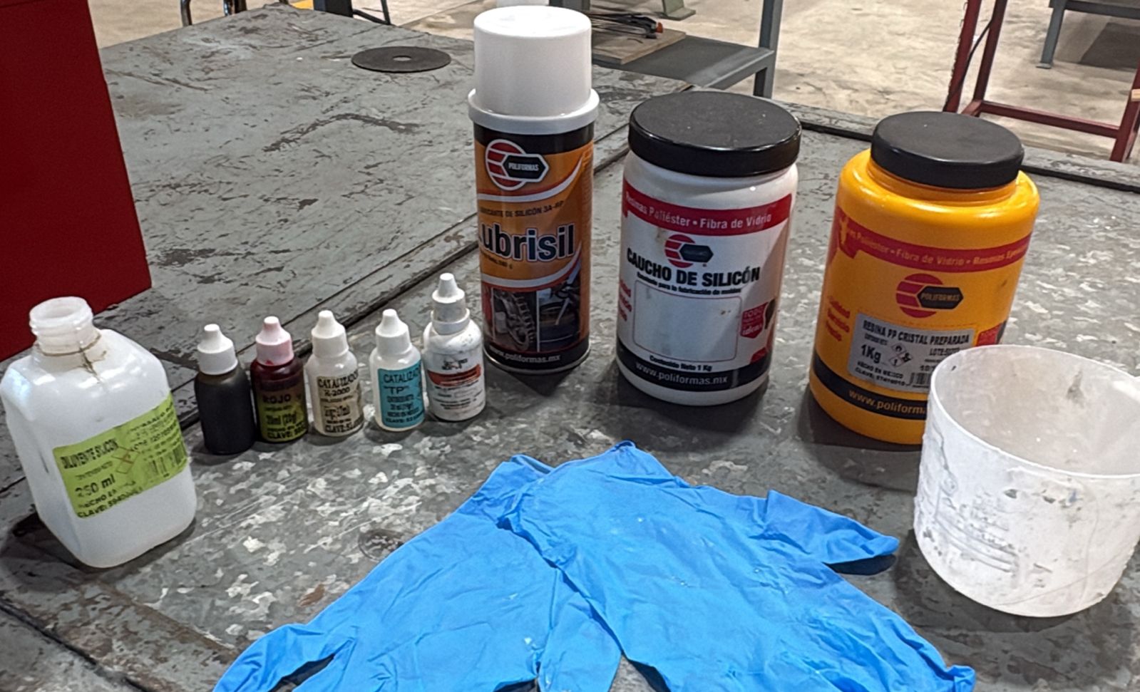 - Polyester Resin – Liquid plastic used for casting rigid parts.