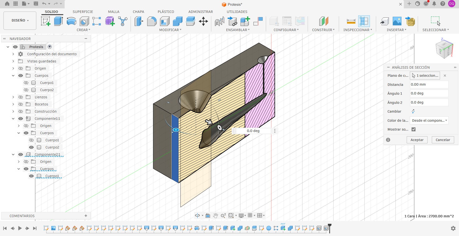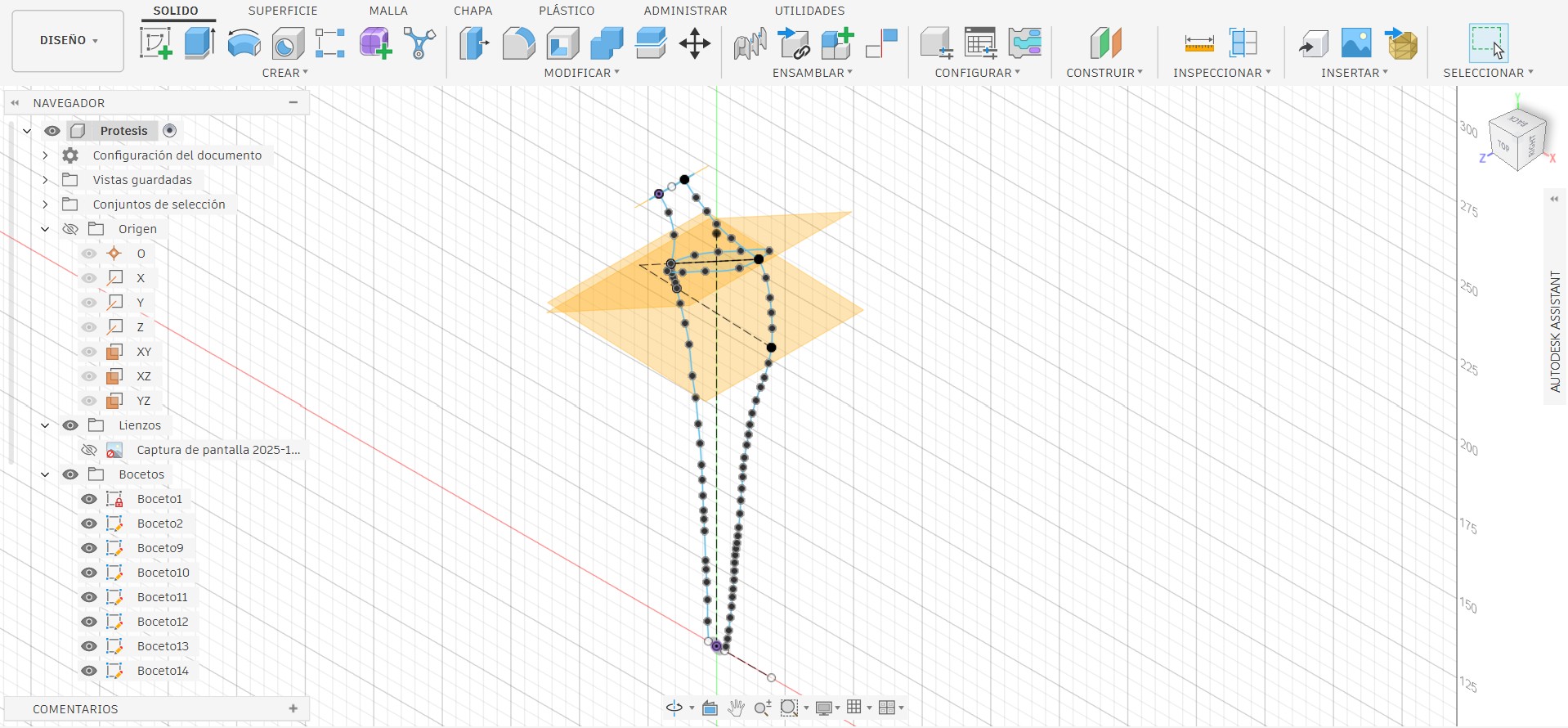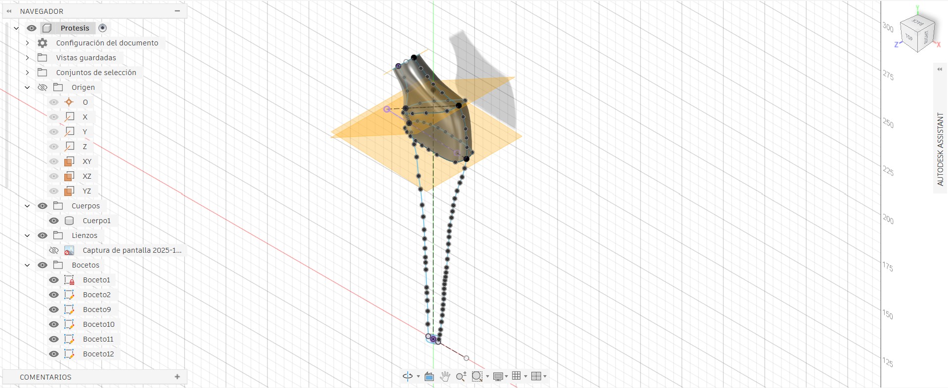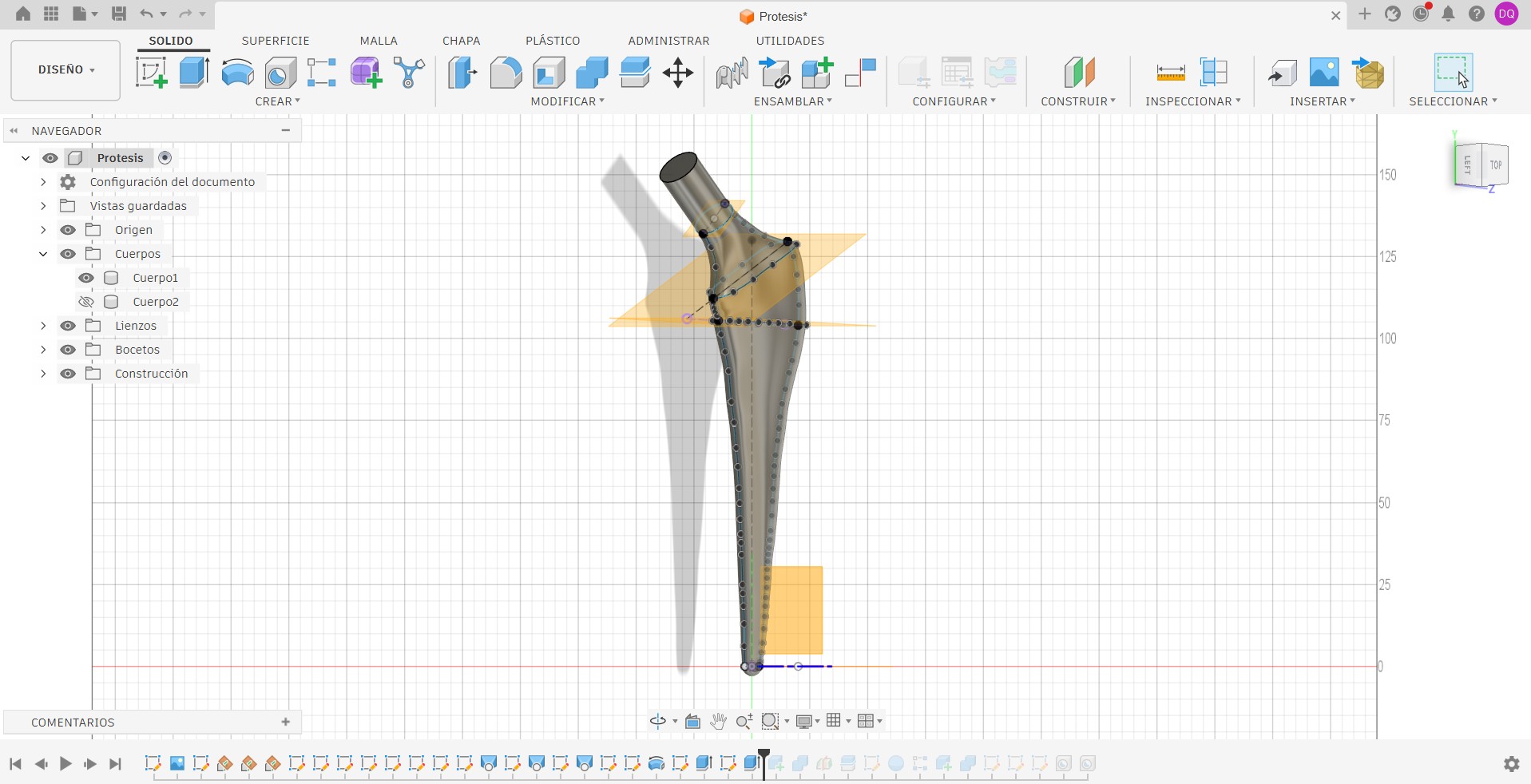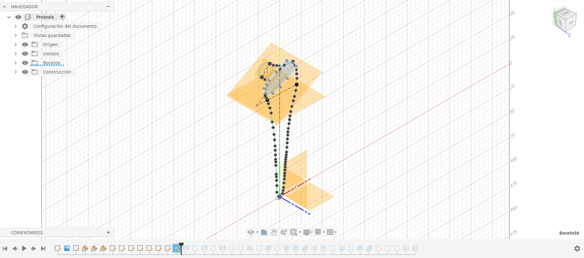 I used multiple reference planes to begin designing my prosthesis; to define the model’s outline, I had to employ different angles.