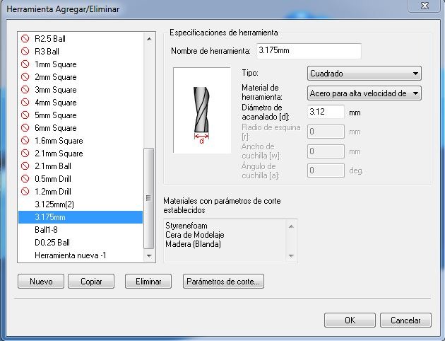 The software includes a default material library; however, new materials and tools can be added as needed.