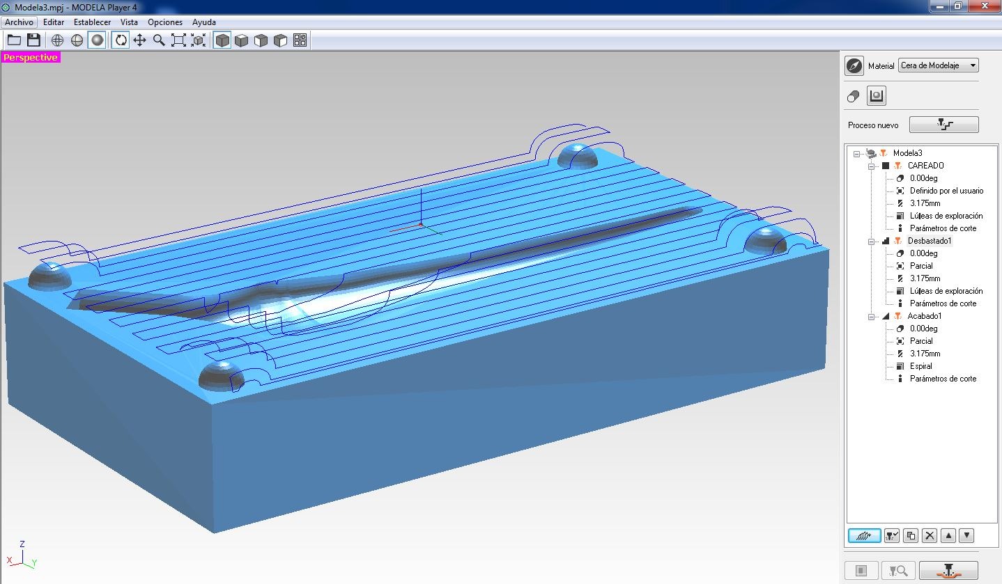 We used three different machining processes for the part: surface preparation (facing), roughing, and finishing to fully detail the final geometry.