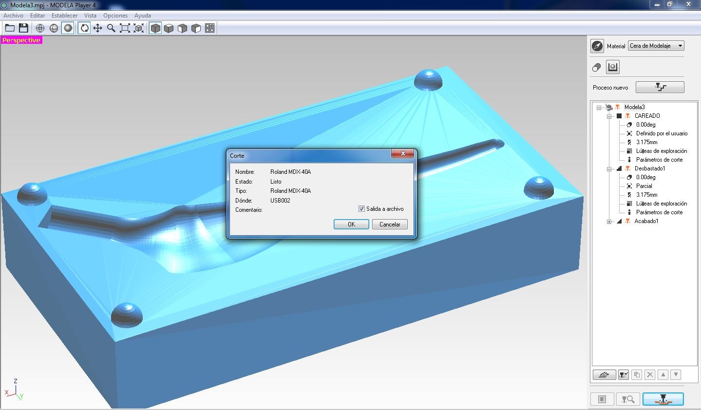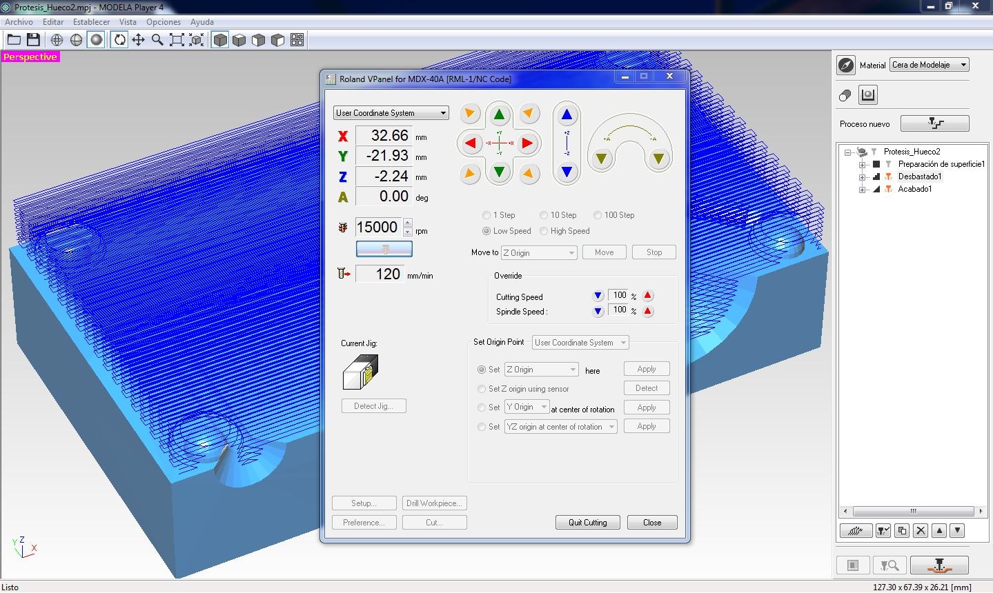 Now, to fabricate the part, we used the MDX‑40A milling machine along with Modela Player 4 software.