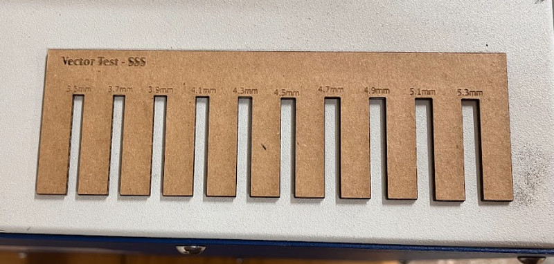 - To determine the kerf of our laser cutter, we first started by creating a comb (With known dimensions) on Inkscape.
