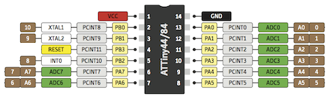 | ATtiny44A | 256B SRAM, 4KB Flash, 256B EEPROM |