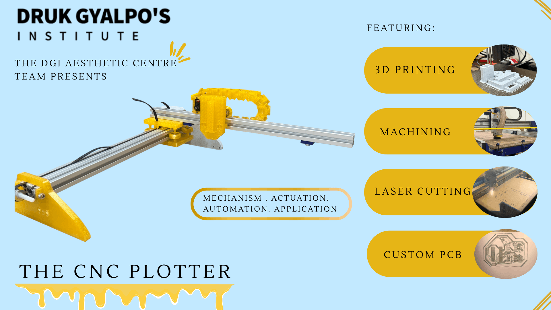 This week our group of three built a 2-axis pen plotter — a drawing machine that moves a pen across paper using two stepper motors on X and Y axes, controlled by GRBL firmware running on an Arduino Nano. The machine uses GT2 timing belts and 20-tooth pulleys for motion, and an MG90S servo to lift and lower the pen.