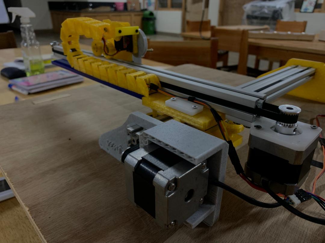 After that I assembled the frame and also I designed and added a drag-chain for the servo wires.