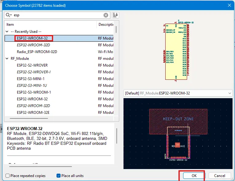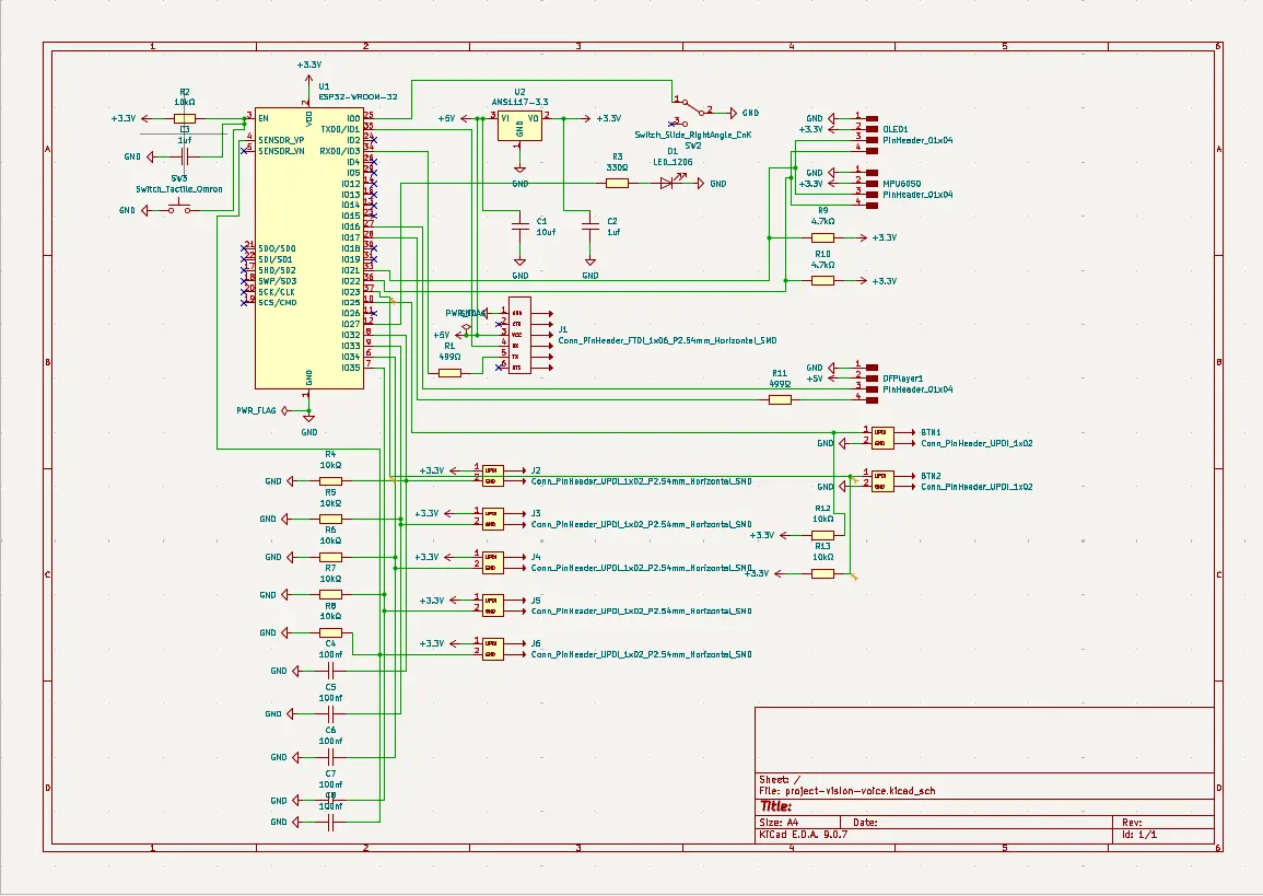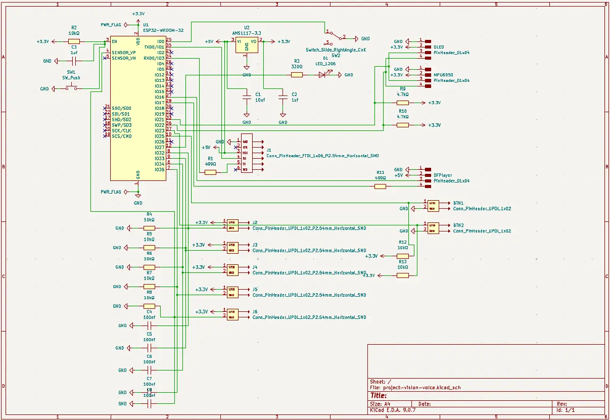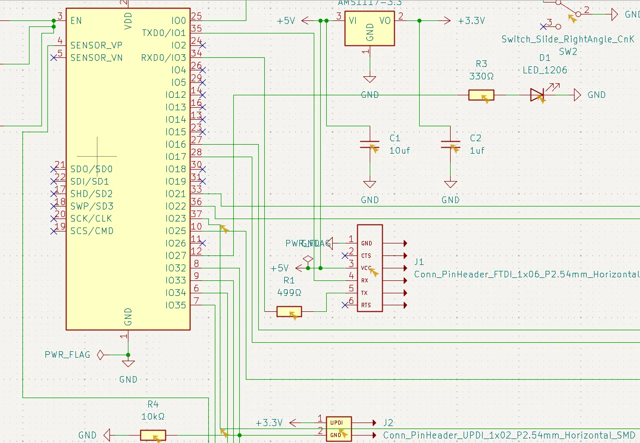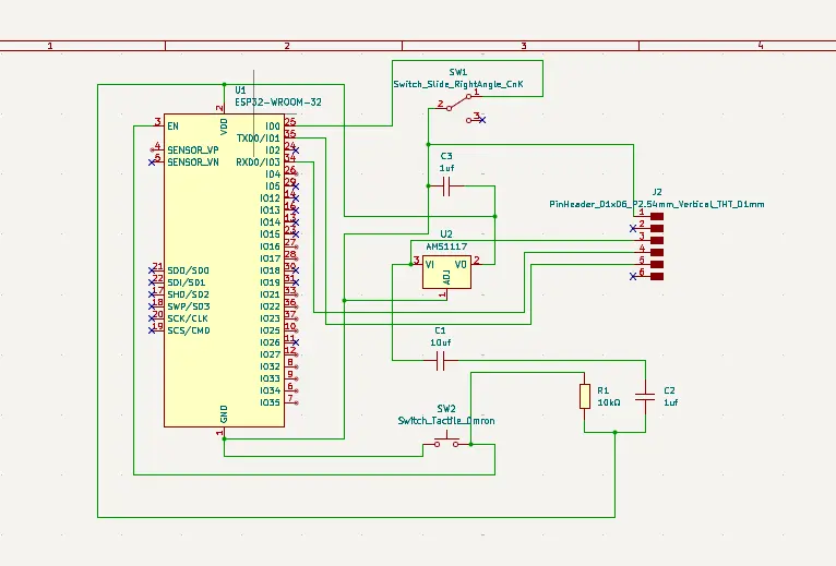I started off by making the basic ESP32 Wroom circuit, but then I realized I also needed to add pins for my other components.