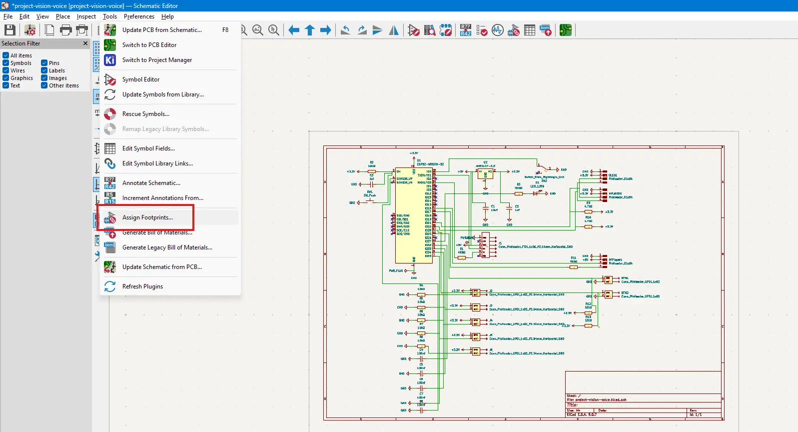Once everything was set up, I started my design process. I created a new project and opened the schematic editor.