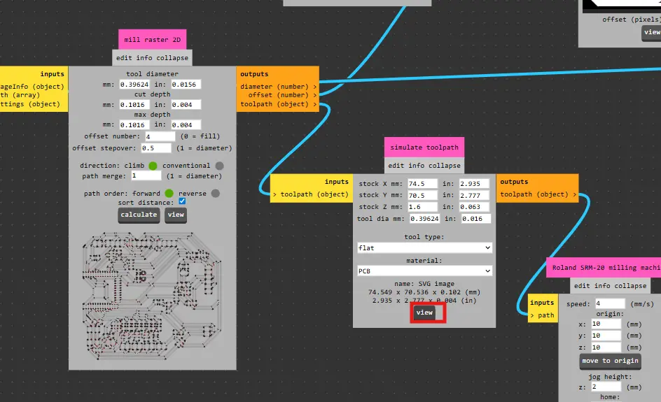 After calulating your file will be automatically be downloaded to your computer and you can view the tool path by clicking the VIEW button like shown above.