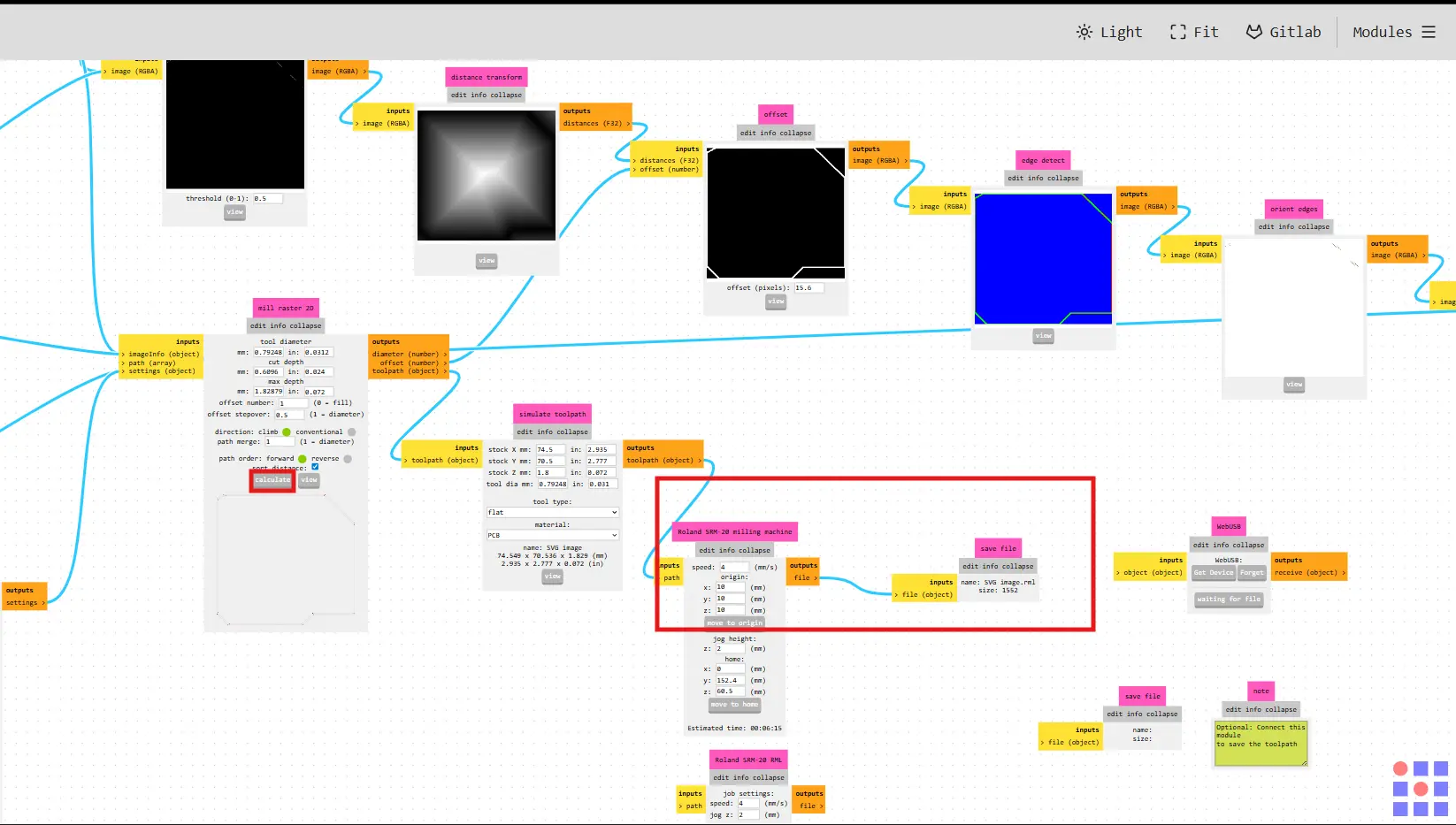After clicking the calulate button you will get the toolpath and the RML file for the EDGE cut.