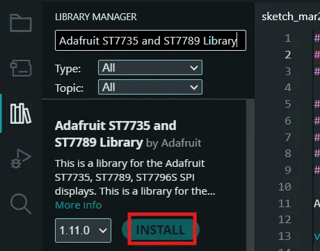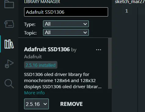 I installed Adafruit SSD1306 and Adafruit GFX Library from the Library Manager.