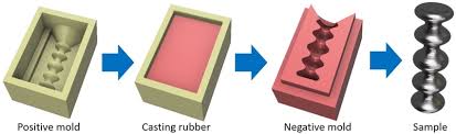 Casting is the next step. It's the actual process of pouring that liquid material into the mold you made. Once it fills up and solidifies you pop it out and you've got a copy of your original object. What's really cool about this is that you can use the same mold over and over again so you can produce multiple identical copies without starting from scratch each time!