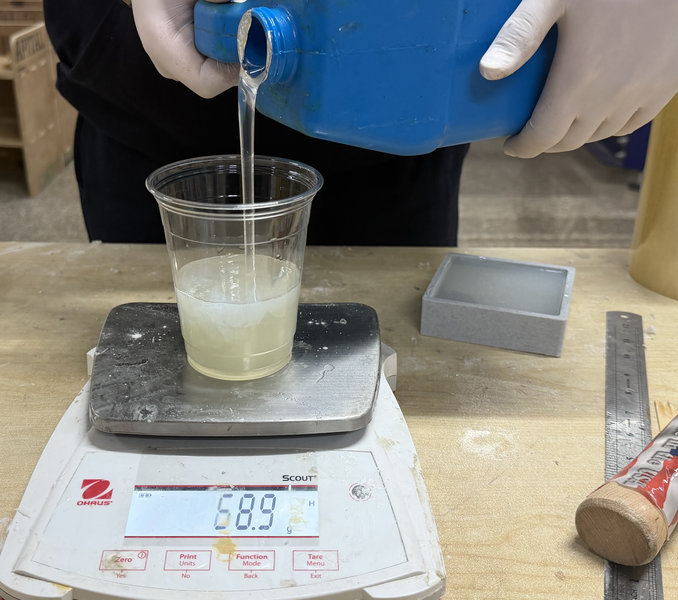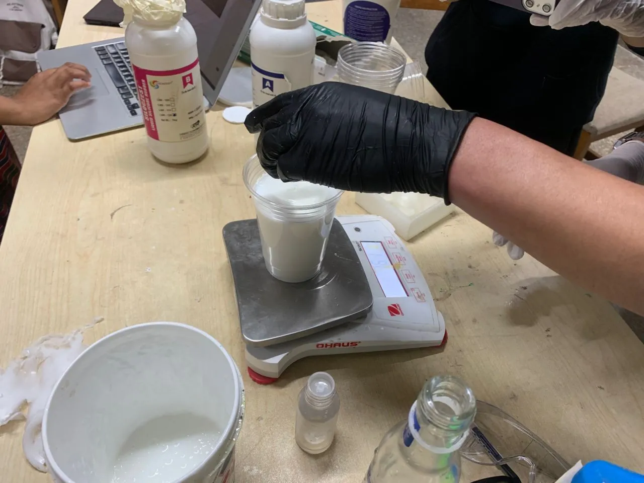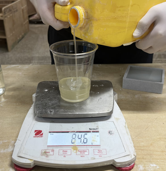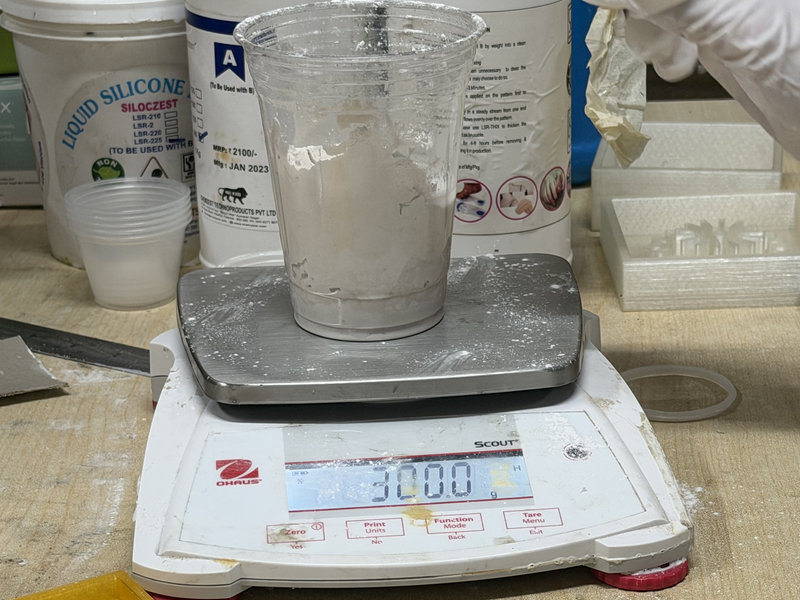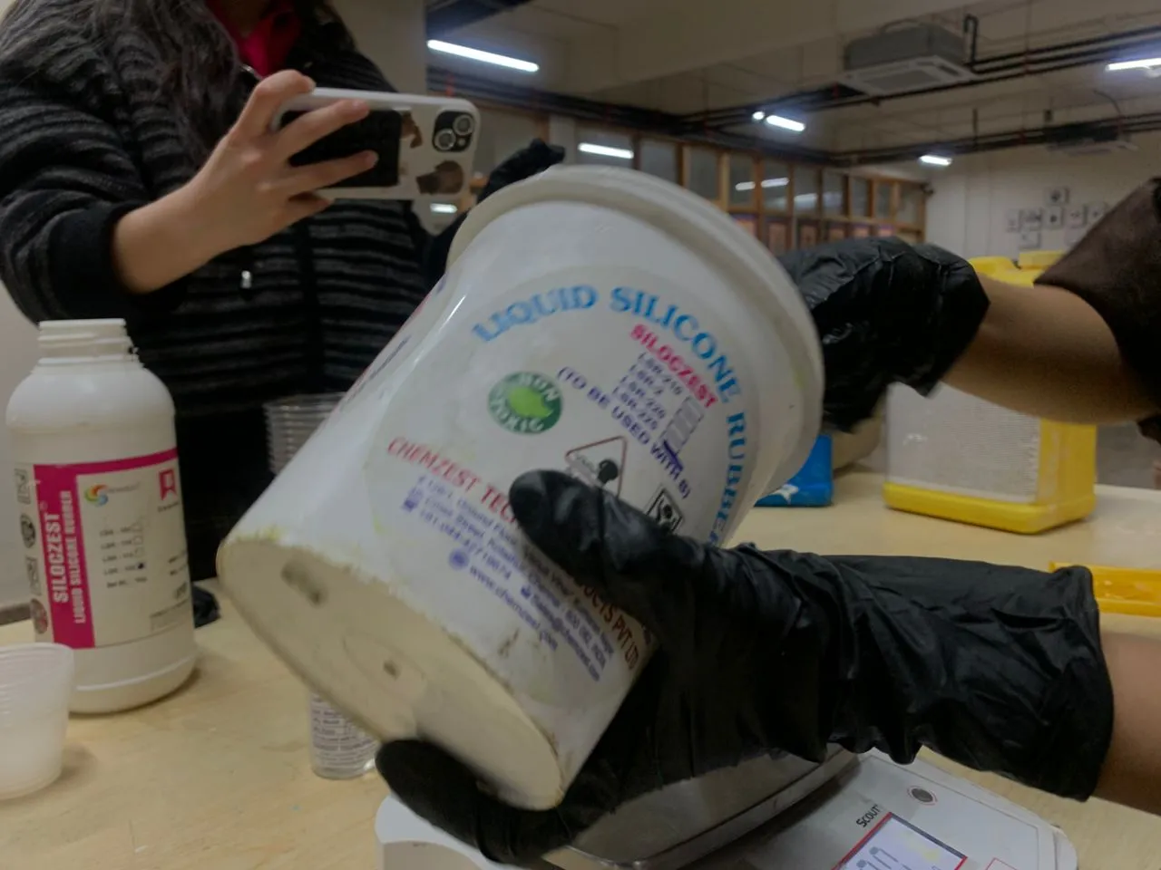 To make the negative mold we first read the safety data sheet for the silicon rubber to understand the safety precautions we needed to take. Then we mixed the silicon rubber with the catalyst in the right ratio using a scale to measure everything accurately.