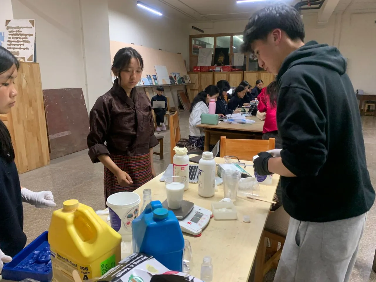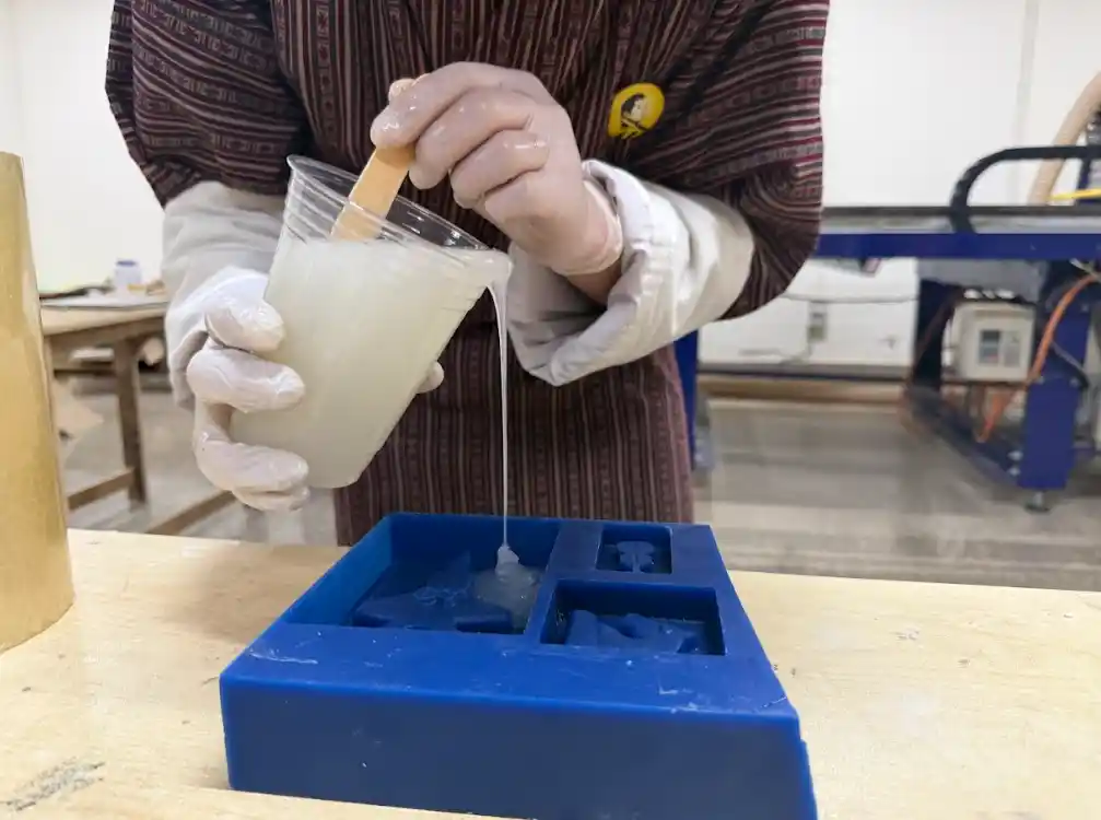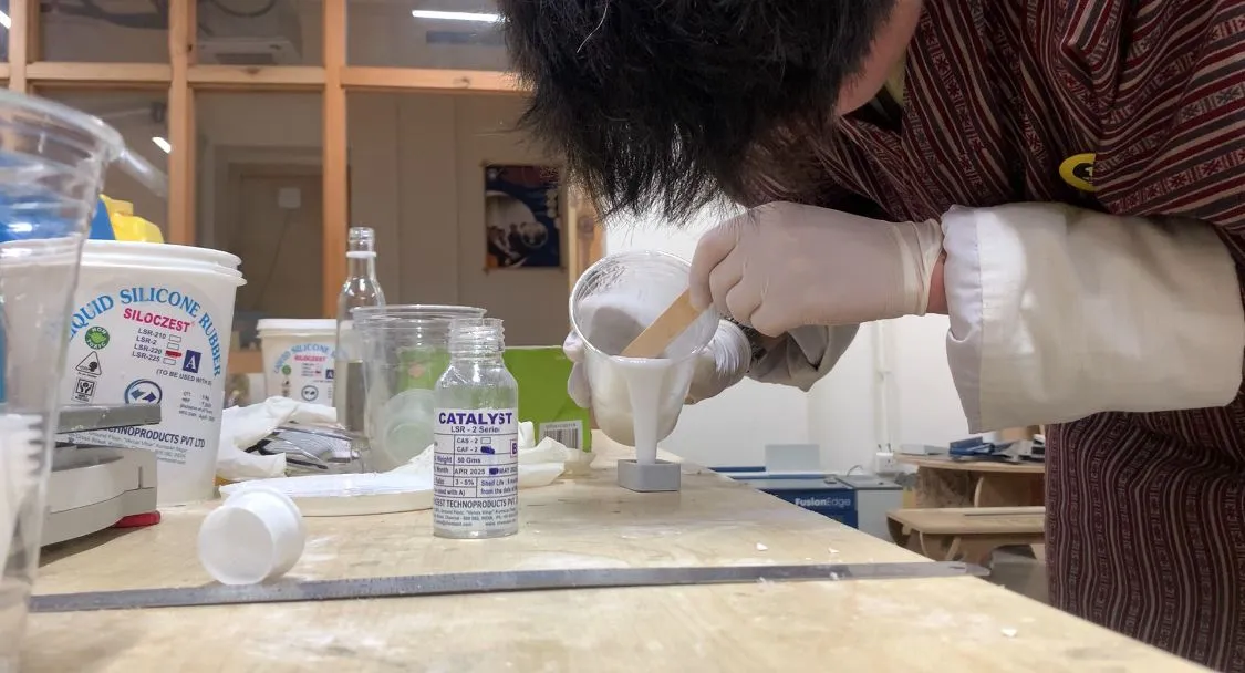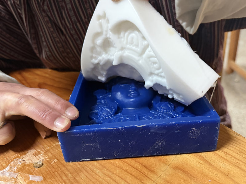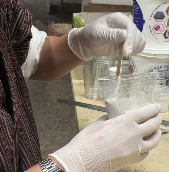 Before I started making the negative mold Dawa and Yangtshel taught us how to make the negative mold using silicon rubber and how to mix it with the catalyst to make it harden. Thank you both for the great demonstration! 😄
