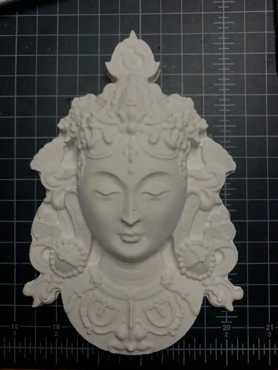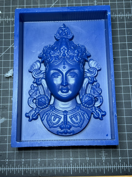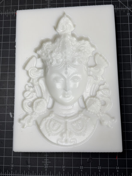 To test the USG Drystone we made a silicone mold from a Green Tara wax mold that was available in our lab. We used the Siloczest LSR 220 Slow and mixed it with the catalyst in a 100:5 ratio by weight which worked out to 420g of LSR and 21g of catalyst.