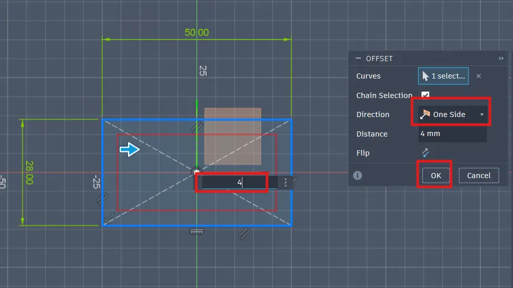 Then using the offset tool I created the inner rectangle which will make the cavity for the mold.