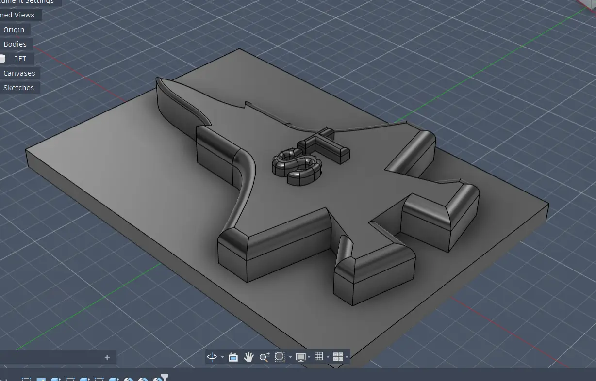 So I started off by creating a sketch of the base for the jet and extruded it. Note that the base is not necessary if you want the jet to be flat but I wanted mine to have a bit of depth to it so I added it!