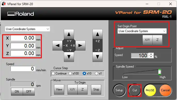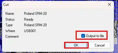 - Now that you have the toolpath you have to export it and import it into the Roland SRM-20 software to start the milling process. Click Cut.