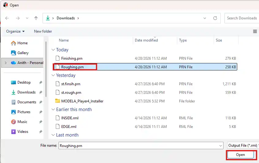 Now that you have both toolpath files you can import them into the Roland SRM-20 software and start milling! The machine will first do the roughing pass to remove the majority of the material and then do the finishing pass to give the mold a smooth surface finish.