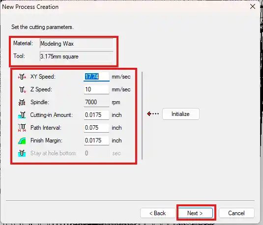 - Select the 3.175mm square end mill from the list of tools and click Next.