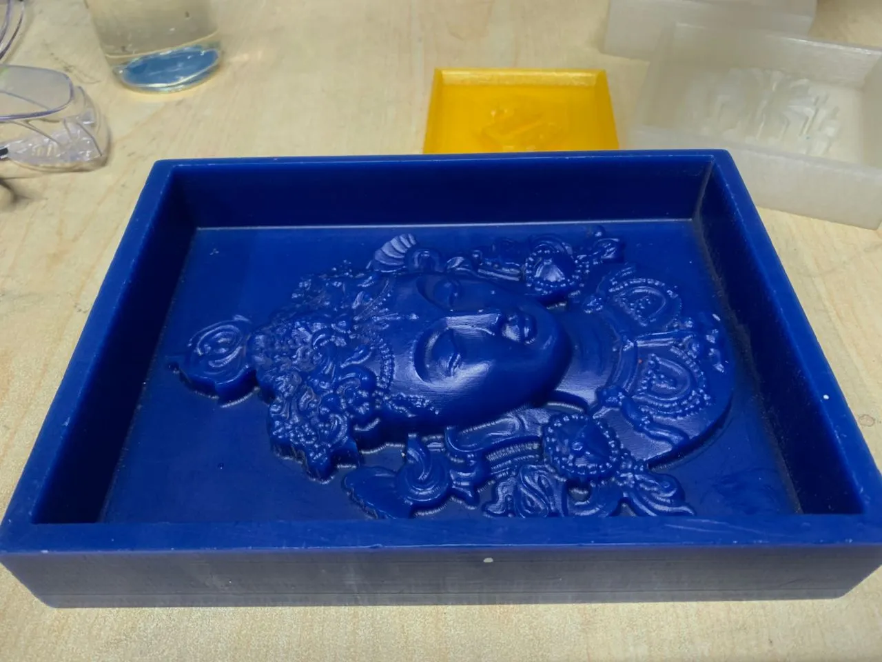 For this we used a mold made by Sir Anith. This mold was really great because it has a lot of different shapes and detailed features that helped us learn how to work with silicon rubber properly.