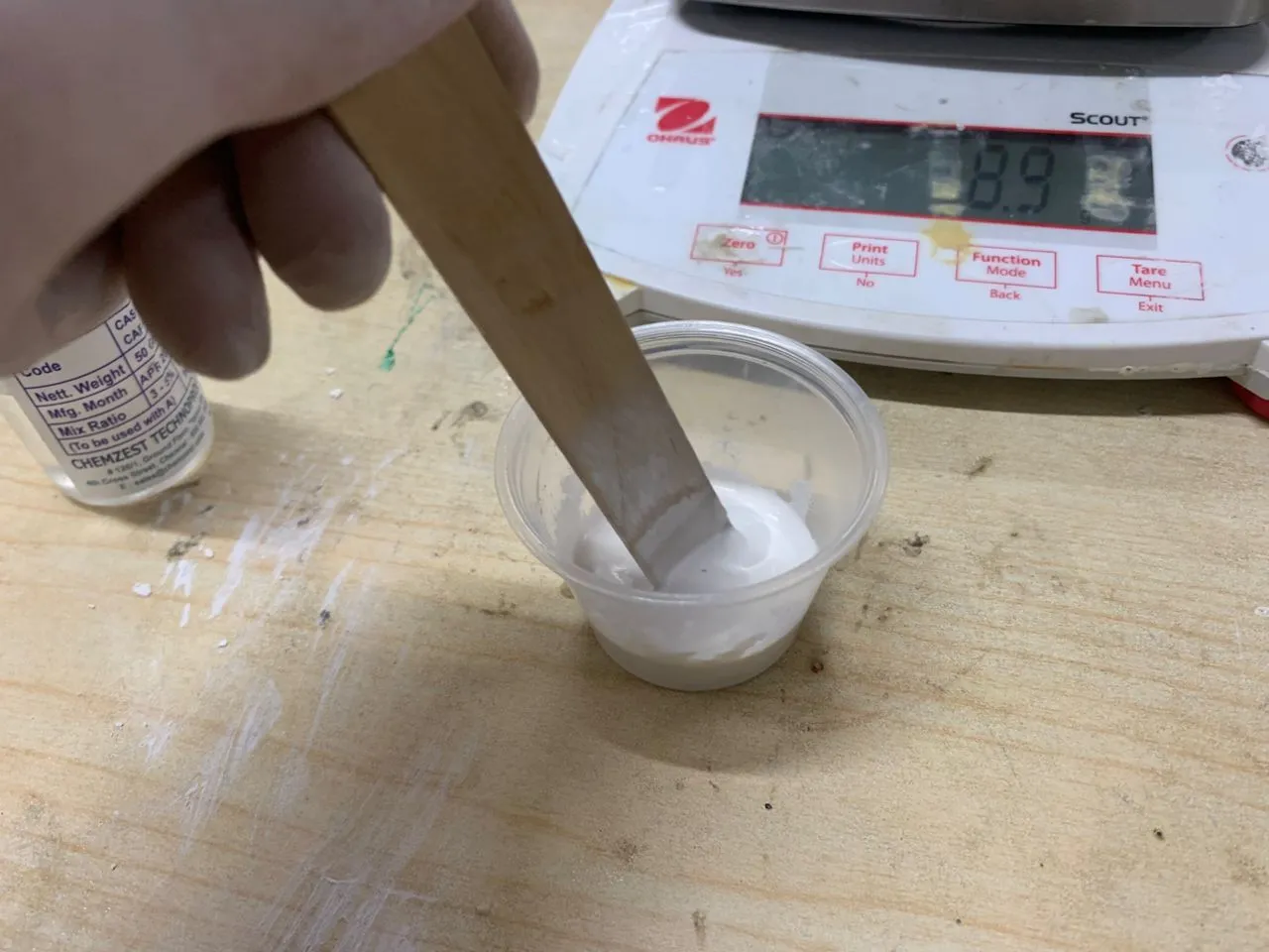 I added Part A and Part B to the mixing container and mixed them together thoroughly for 3 to 5 minutes to make sure everything was evenly distributed.