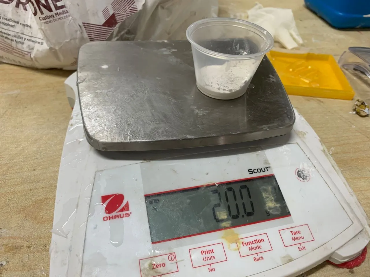 After that we used Hydrostone which is a type of plaster to cast our parts using the negative mold. The mixing ratio for Hydrostone and water is 100:30 which means for every 100 parts of Hydrostone you need to add 30 parts of water.