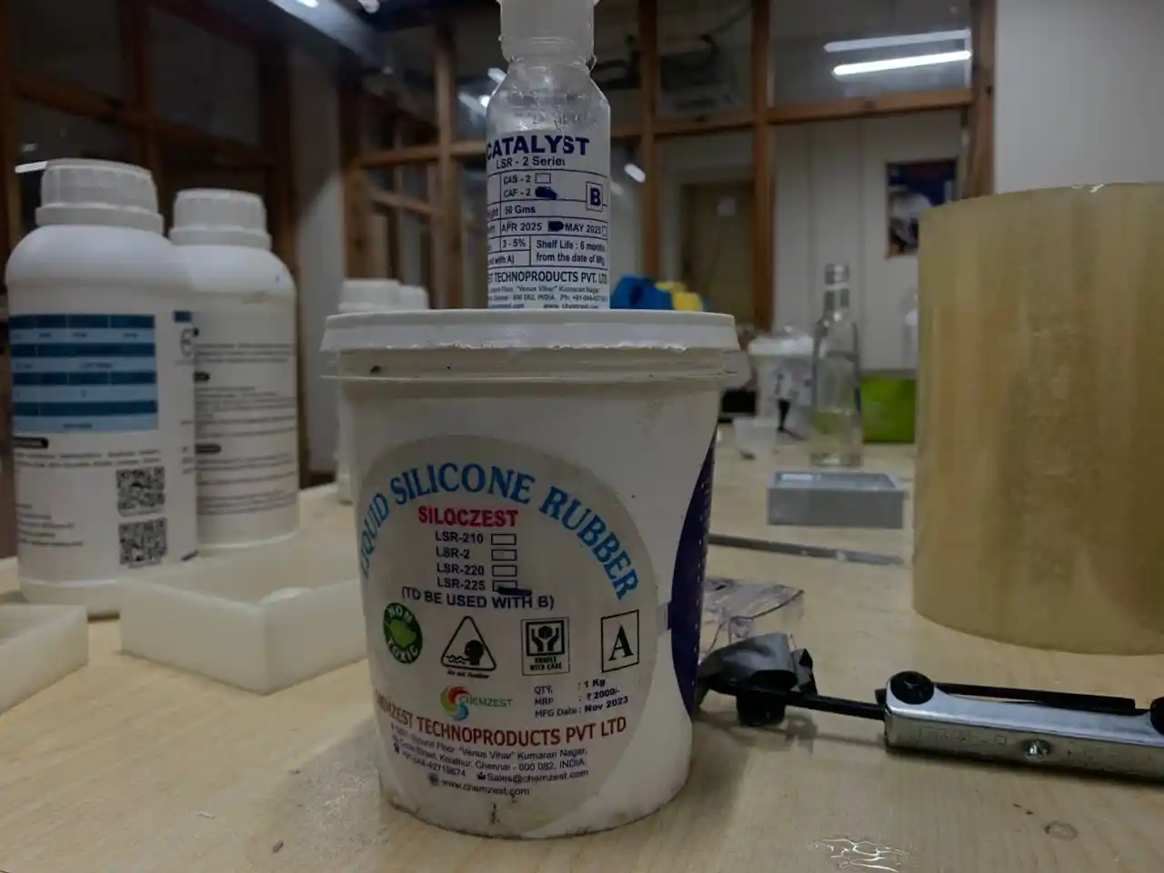 We used the Siloczest Liquid Silicone Rubber LSR 225 and its catalyst. The mixing ratio is 100:5 which means for every 100 parts of silicon rubber you need to add 5 parts of catalyst. Here is the Data Sheet for the silicon rubber we used.