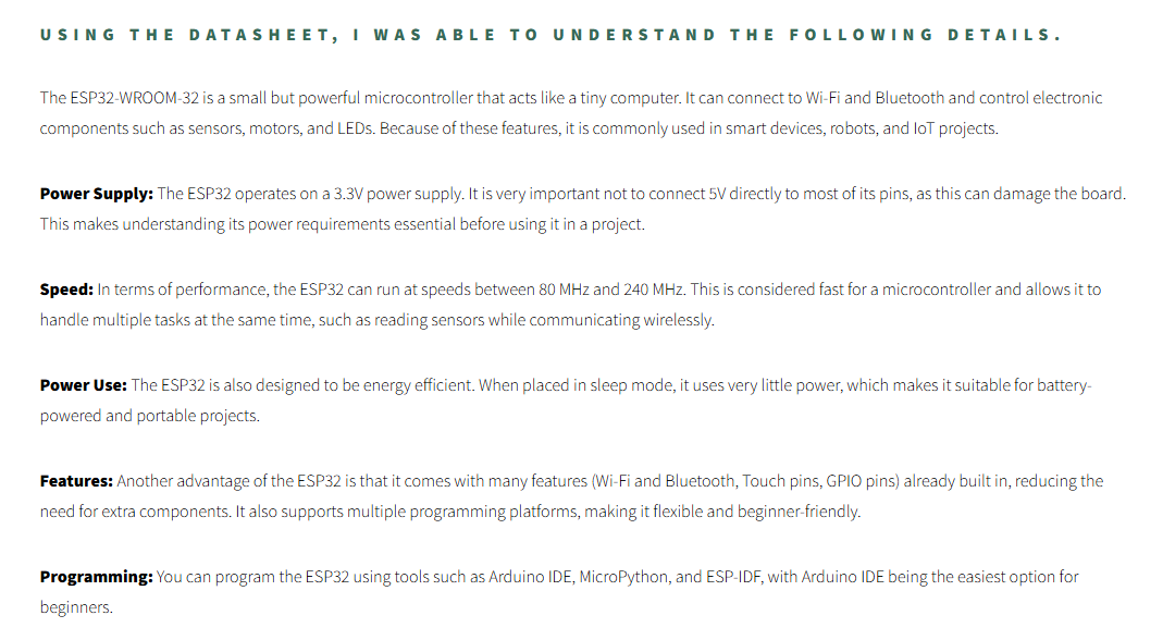 This week, I went through the datasheet for the ESP32-WROOM-32 and found quite a lot of important details.