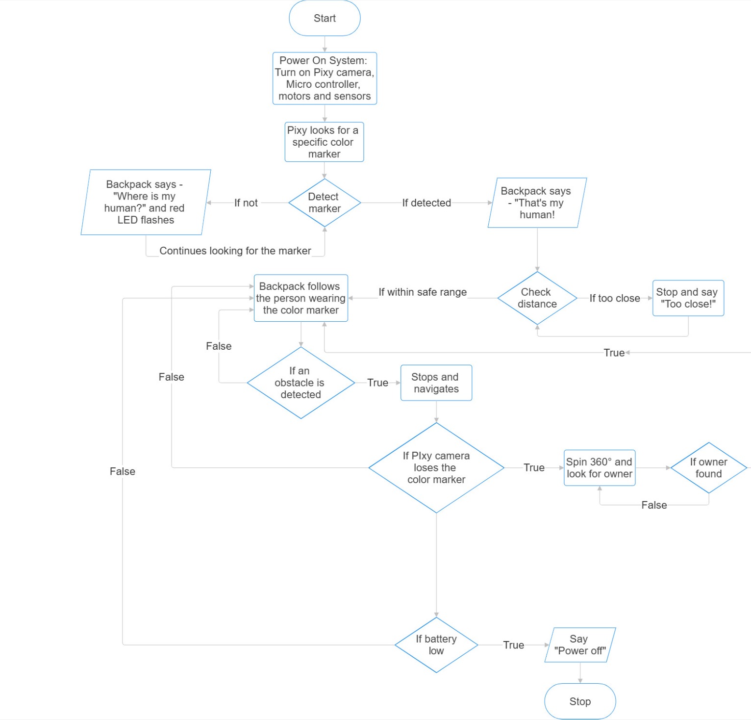 Image sourceHere is a simple flowchart of the backpack's functionality