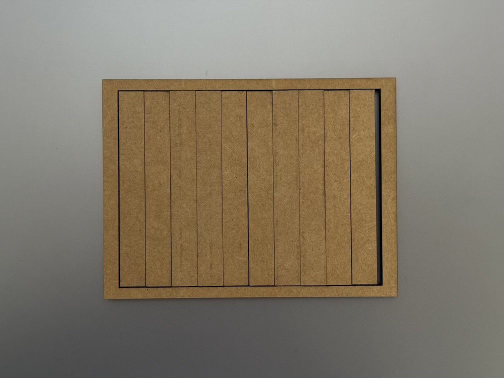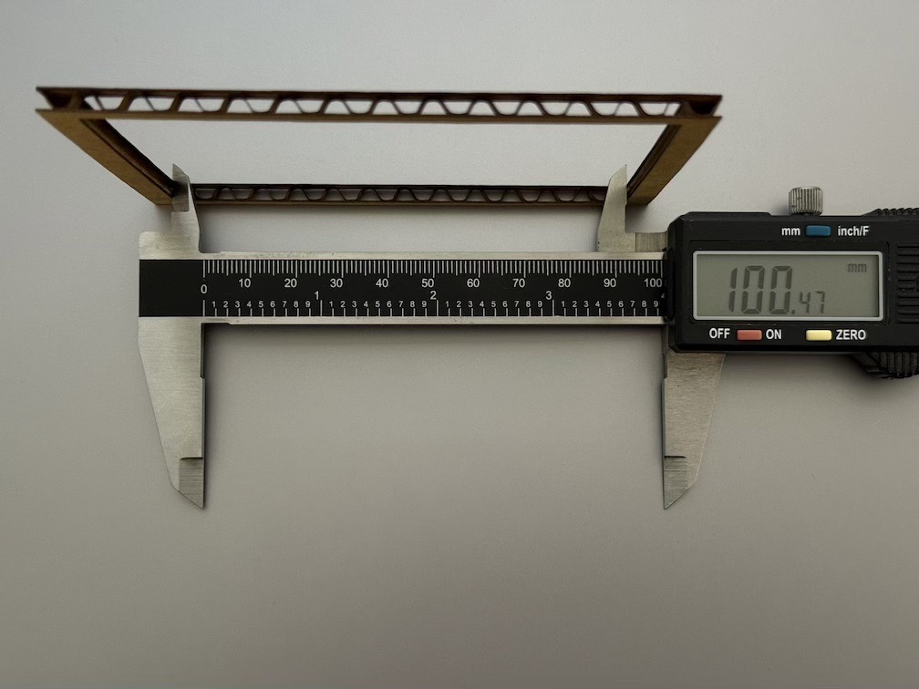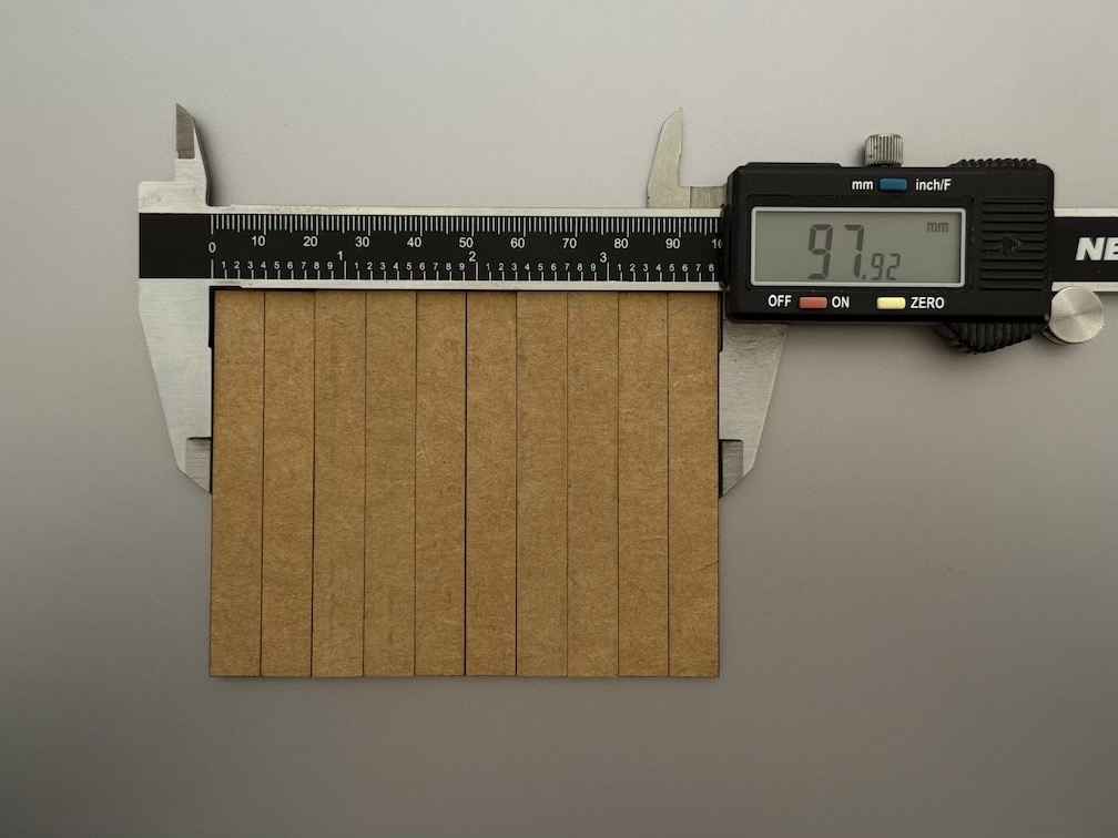 We also measured the kerf of our Laser cutter. First we did a bit of research. The kerf is the portion of material that is burnt away by the laser beam. We learnt that the kerf depends on several factors, among them the focus and type of material.