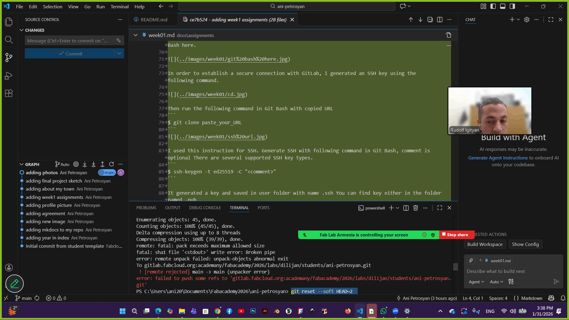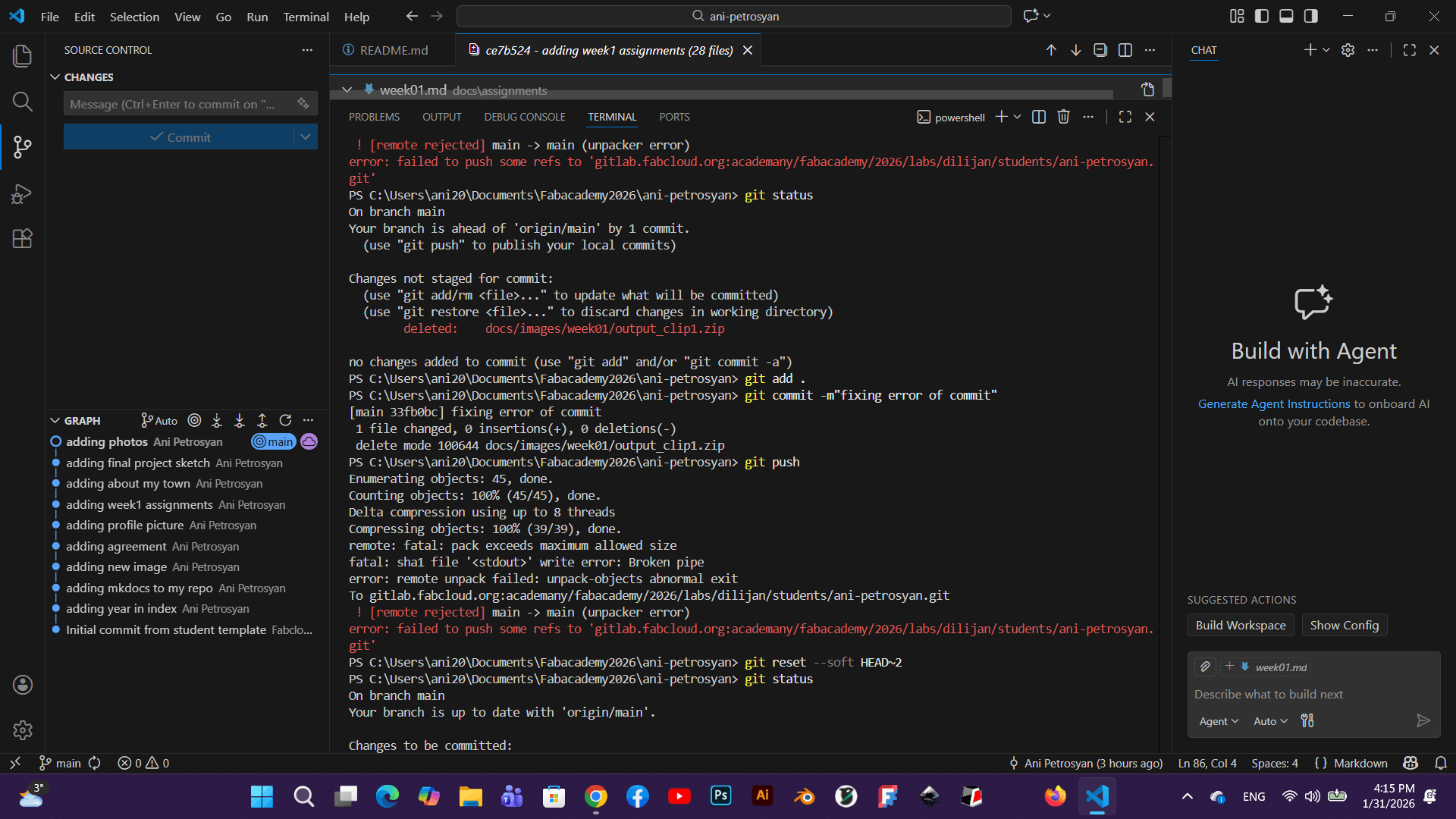 Although I studied the purpose of Git and its role in the Fab Academy documentation process, during the first week I was not able to fully configure the website and upload changes using Git on my own.