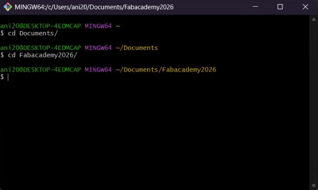 Git created a new folder with the repository name inside my current working directory (Fabacademy2026).