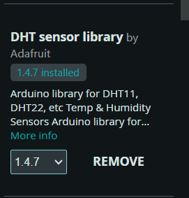 For programming, I used suitable libraries that allow easy reading of the data transmitted by the sensor. During operation, the microcontroller periodically receives data from the sensor and converts it into readable values in terms of temperature (°C) and relative humidity (%).