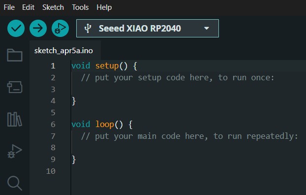 As part of this tutorial, I experimented with the RP2040. When the program is opened, it includes two main functions։ void setup() and void loop().