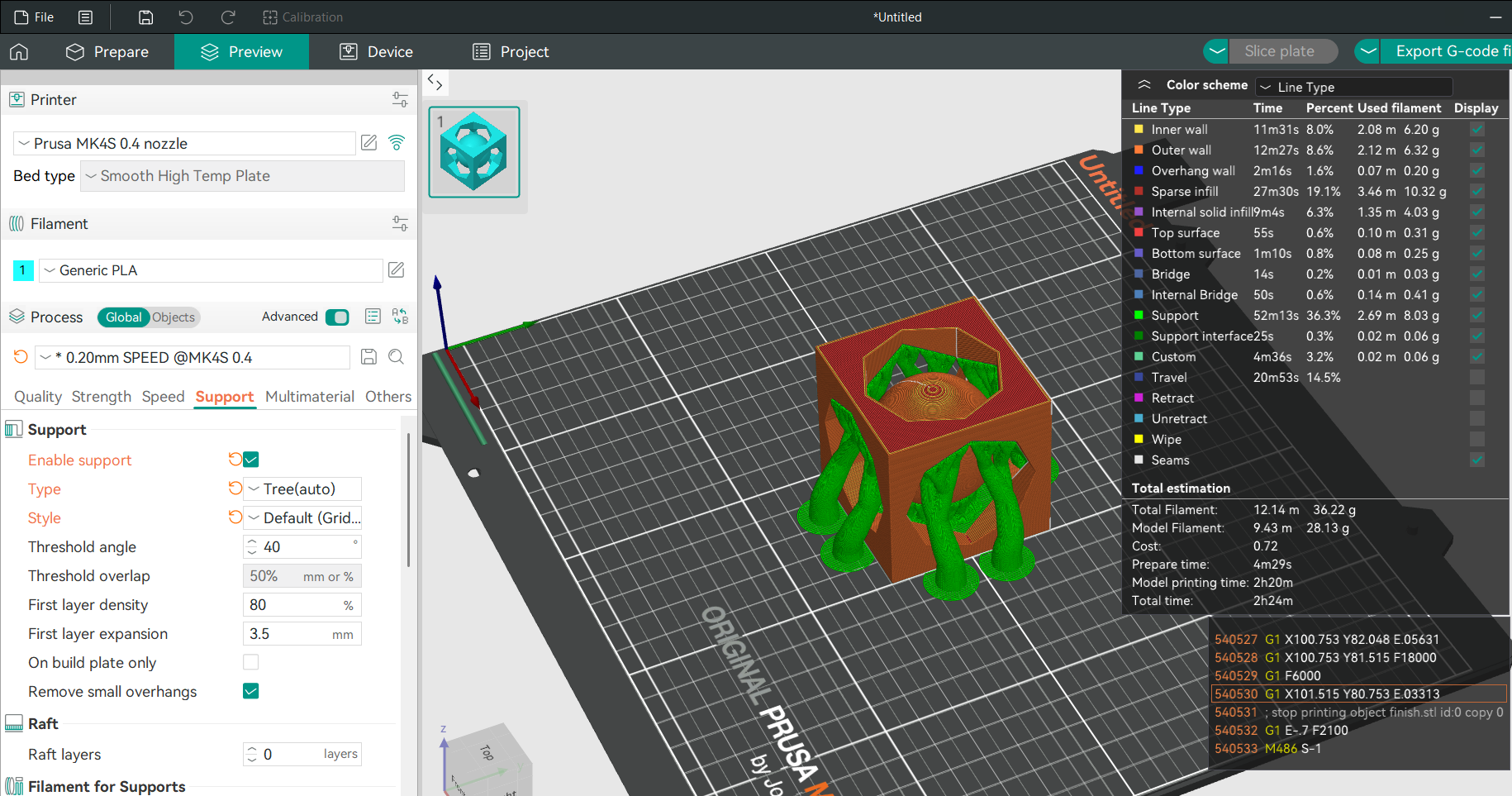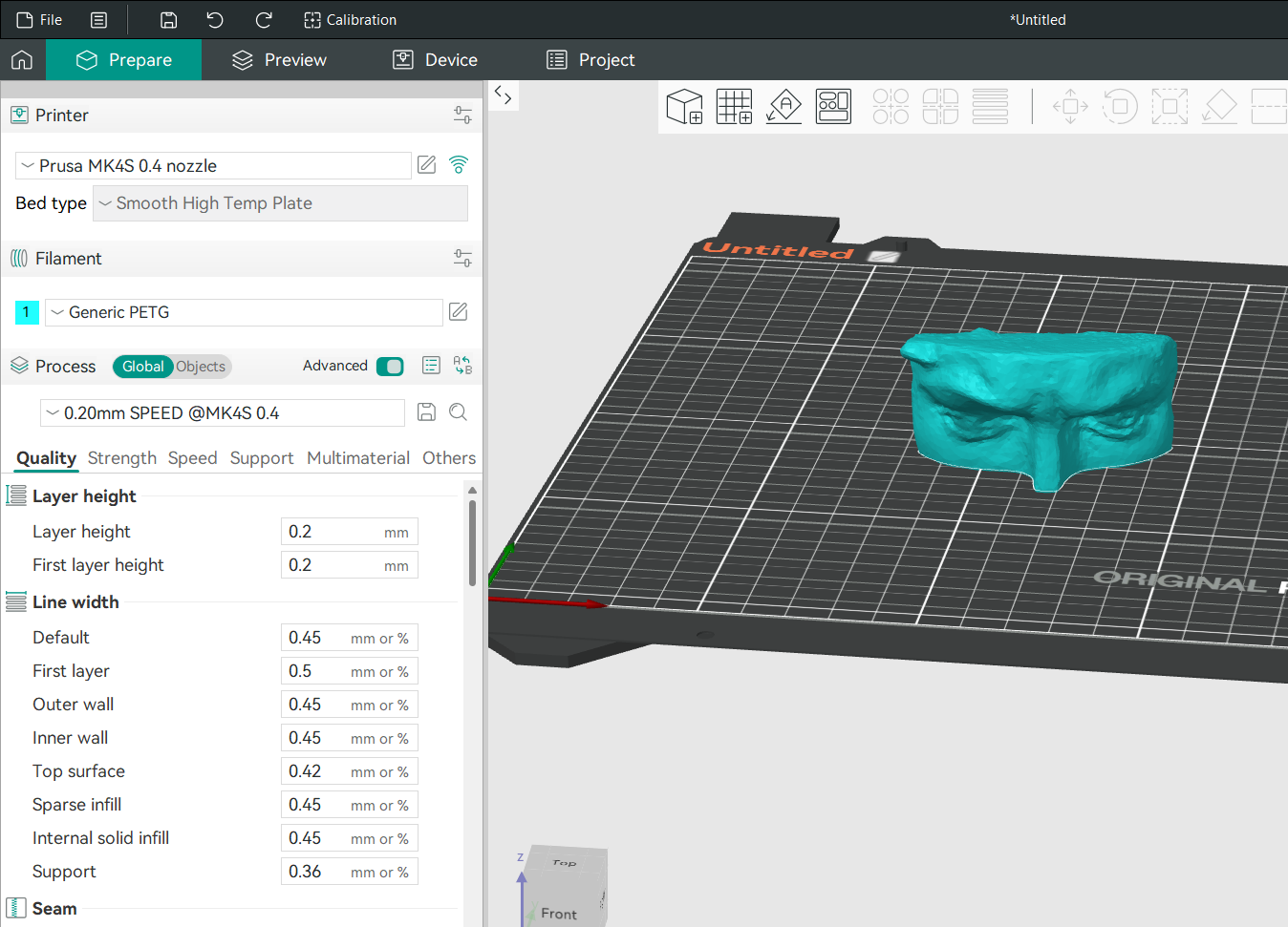 Next, I imported the cleaned model into Orca Slicer, where I prepared it for printing by selecting the appropriate print settings. After slicing, I printed the file using PETG material on a Prusa MK4S 3D printer.