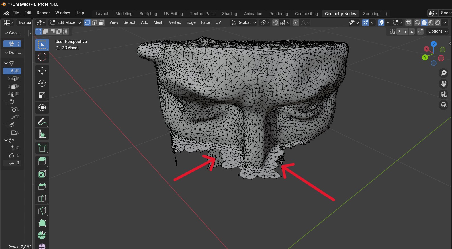 After exporting the scanned model, I imported the resulting OBJ file into Blender for inspection and refinement. In Blender, I examined the mesh structure and performed several cleanup operations to make the model more suitable for 3D printing. I removed unnecessary fragments and corrected some surface irregularities, resulting in a cleaner and technically prepared model.