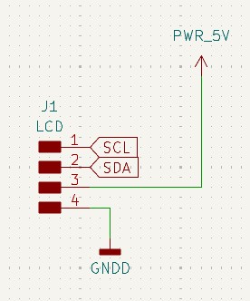 The LCD is connected to the microcontroller using the I2C communication protocol, which requires only two wires: SDA and SCL. This approach helps save microcontroller pins and simplifies the wiring.