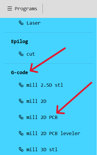 Next, I proceeded to generate the G-code. I accessed MODS Project through the browser and, from the available options, selected Mill 2D PCB in the G-code section. This step allowed me to prepare the toolpaths and generate the final file required for the milling process.