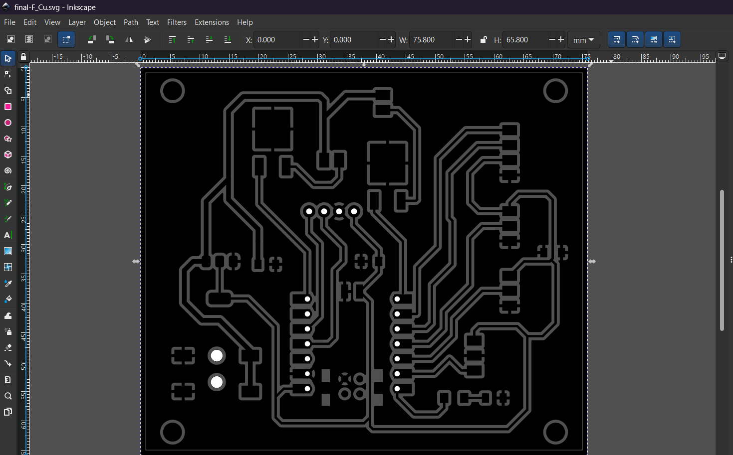 Before that, I opened the exported SVG file in Inkscape to verify that the dimensions of the PCB had not changed during the export process.