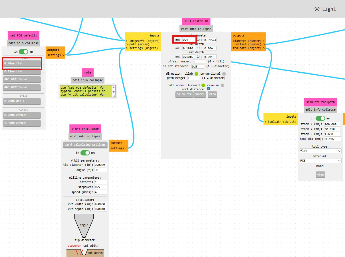 - a 0.4 mm flat endmill for more stable and precise results.
