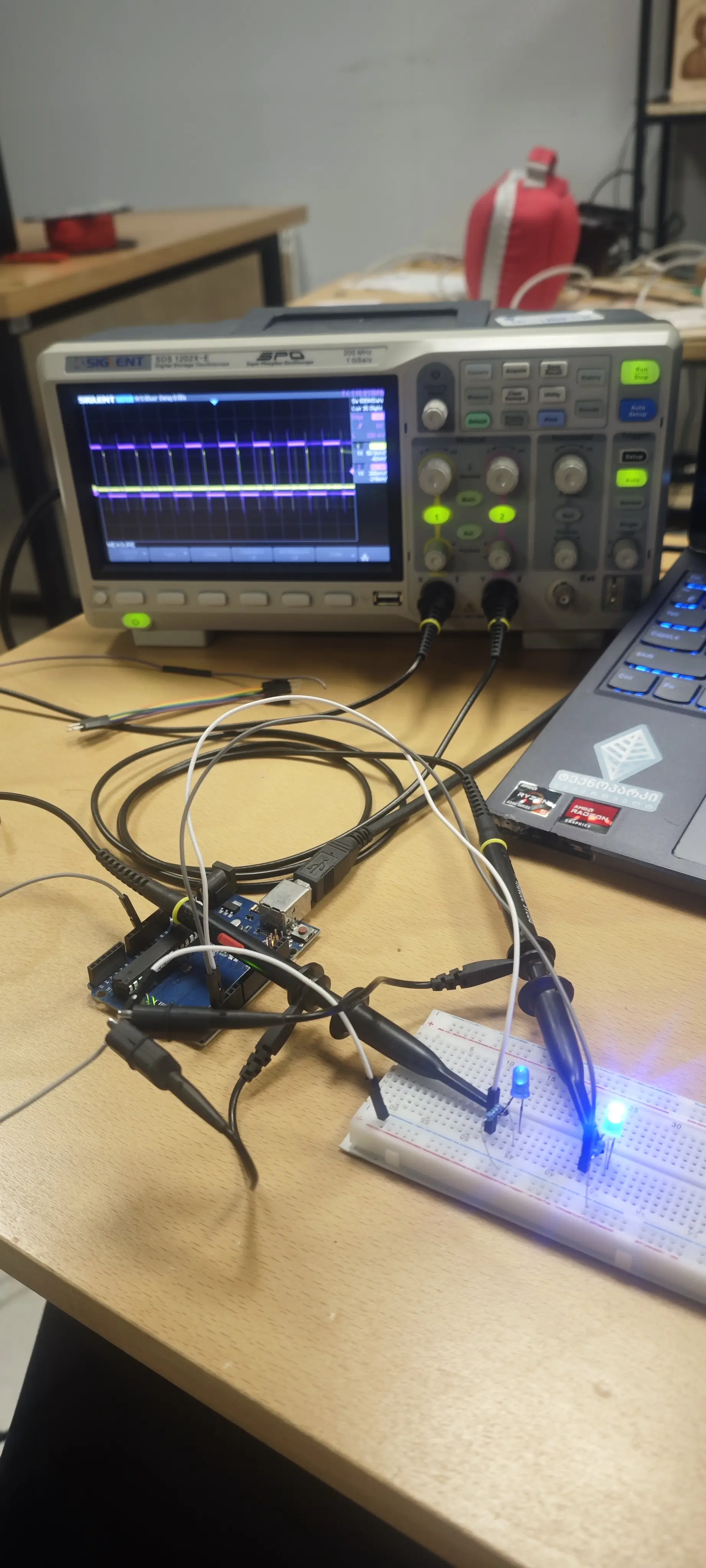 For this week group assignment we should use the test equipment in your lab to observe the operation of a microcontroller circuit board. I'm using Siglent SDS 1202x-e digital oscilloscope for testing arduino uno board two led digitalwrite to digitalwriteFast comparison.