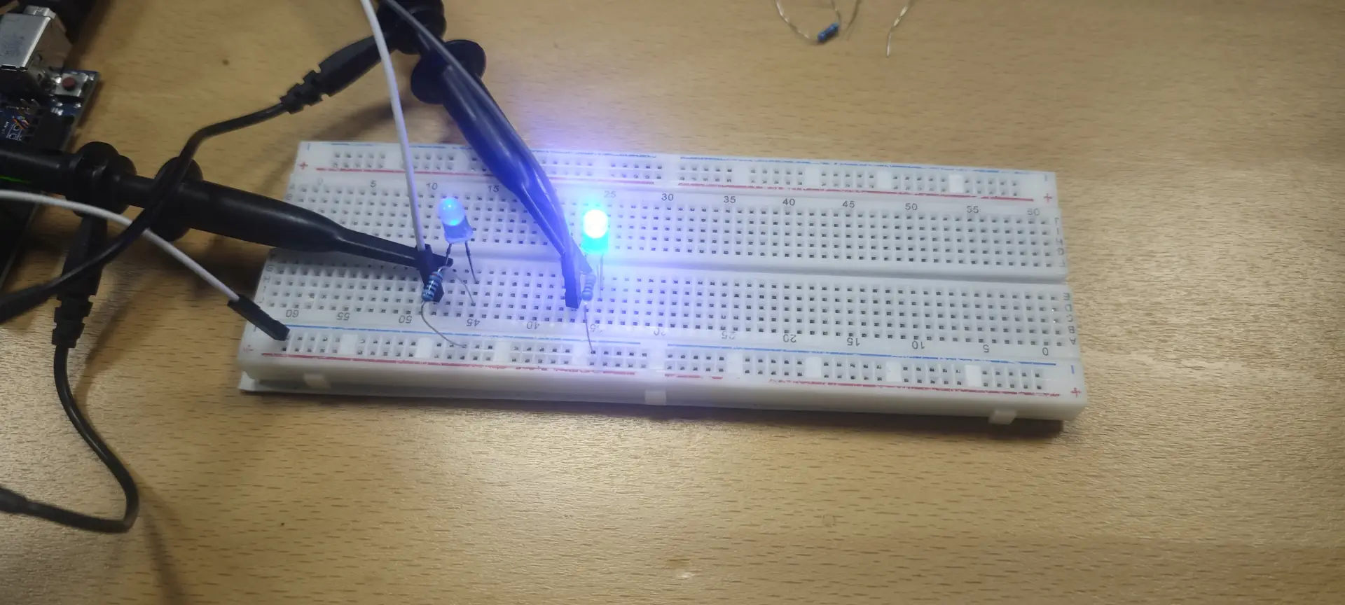 To verify the circuit before fabrication, I simulated the LED trigger logic.