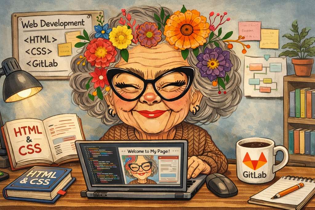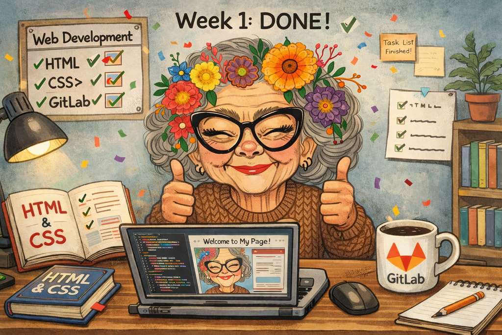 “The first week requires a picture where this grandmother studies the following topic: Principle and practice, project management, this implies the creation of a personal web page (html, css), gitlab settings”