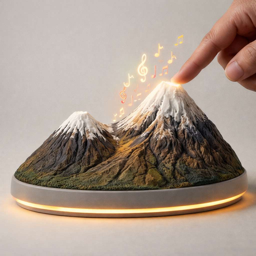 “Generate a concept image of a decorative Mount Ararat model that turns on lights and plays Armenian music when touched.”