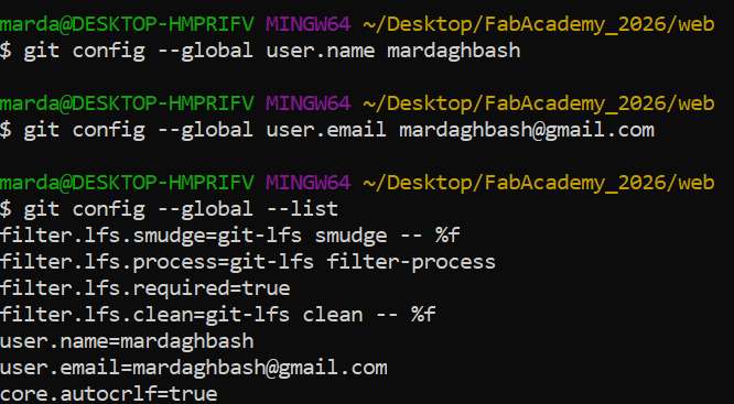 To verify that the configuration was applied correctly, I used:git config --listThis command allows us to check whether the correct settings are in place before moving forward.