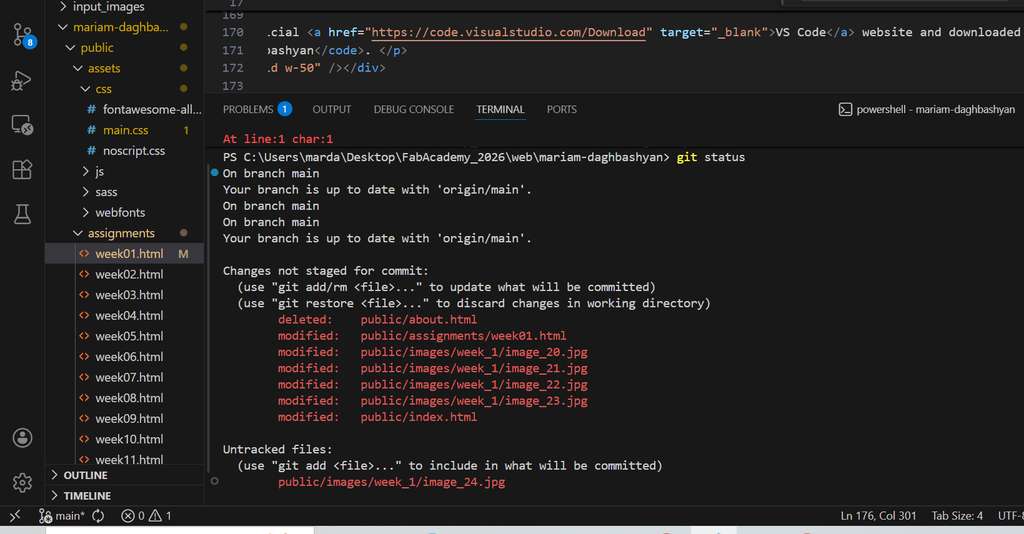 During Week 1, I set up my development environment and built a solid foundation for the upcoming assignments. I installed and configured all the required software tools, including Visual Studio Code and Git, and successfully cloned and organized my project repository. I also reviewed the website structure, practiced basic Git workflows, and ensured everything was functioning correctly.