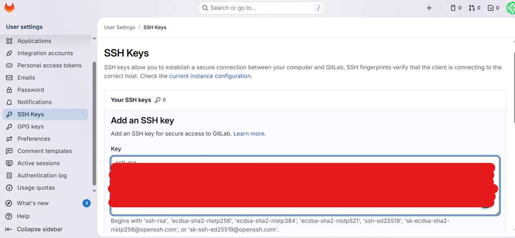 Now, using screenshots, I will demonstrate how I added the SSH key to my gitlab.