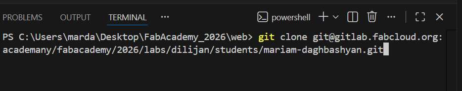 I had already cloned my project repository from Git, the project was available on my local machine as mariam-daghbashyan.